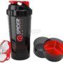 Protein Shaker & Gym Bottle 3 in 1 Stylish Package- RED